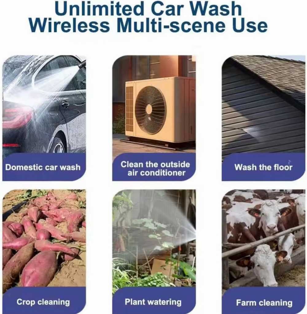 Double Battery Car Washer Gun is a cordless high-pressure washing tool powered by dual lithium batteries providing strong water flow for fast car cleaning Designed for home use it is lightweight portable and easy to operate for cars patios bikes and outdoor surfaces
